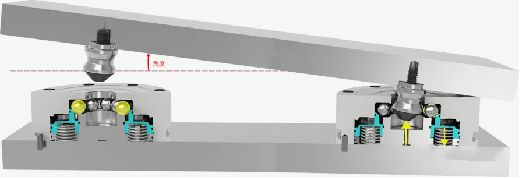O sistema de posicionamento do ponto zero pertence ao mecanismo de bloqueio, que é aberto durante a ventilação e trancado fora do ar. Quando a pressão hidráulica ou a pressão do ar são aplicados ao sistema de posicionamento zero, a pressão comprime a mola abaixo através do pistão e a bola de aço se espalhou para os dois lados. O aperto depende da mola forte interna e nenhuma fonte de ar é necessária durante a operação normal. O sistema de mudança rápida é composto de diferentes tipos de módulos de posicionador, o uso não é o mesmo, o corpo muda, a unha também muda, é dividida em posicionador, pino de posicionamento, pino de orientação, pino de travamento, pertence ao posicionamento clássico "um lado de dois pinos".